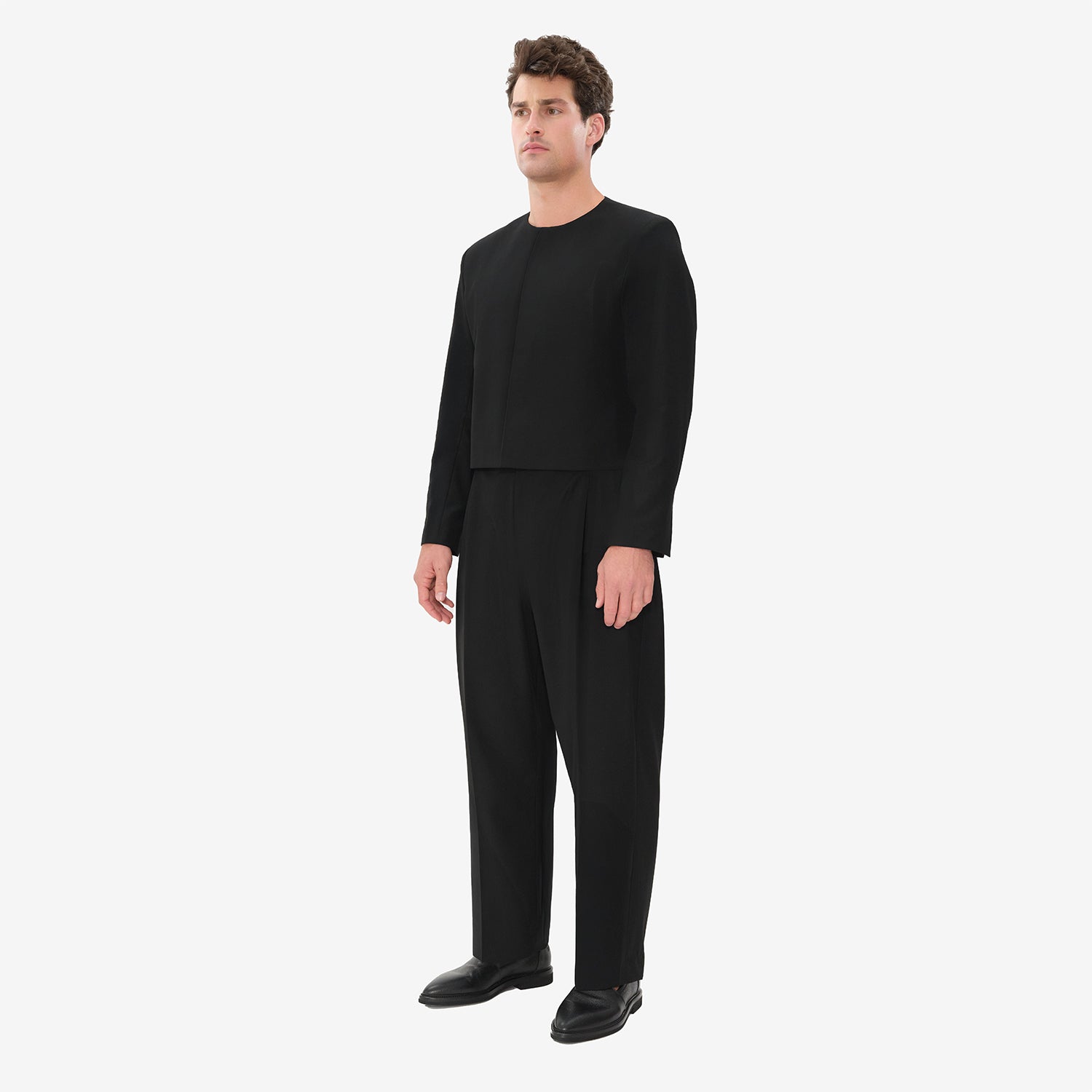 The High-Waisted Relaxed Wide Leg Pant, crafted from a refined wool blend, offers a relaxed yet polished silhouette. Featuring front double pleats for added structure, these pants provide a comfortable fit through the hips and thighs, with a straight leg that creates a clean, balanced look. The high-waisted design enhances both style and comfort, while the wool blend ensures a refined texture with durability.