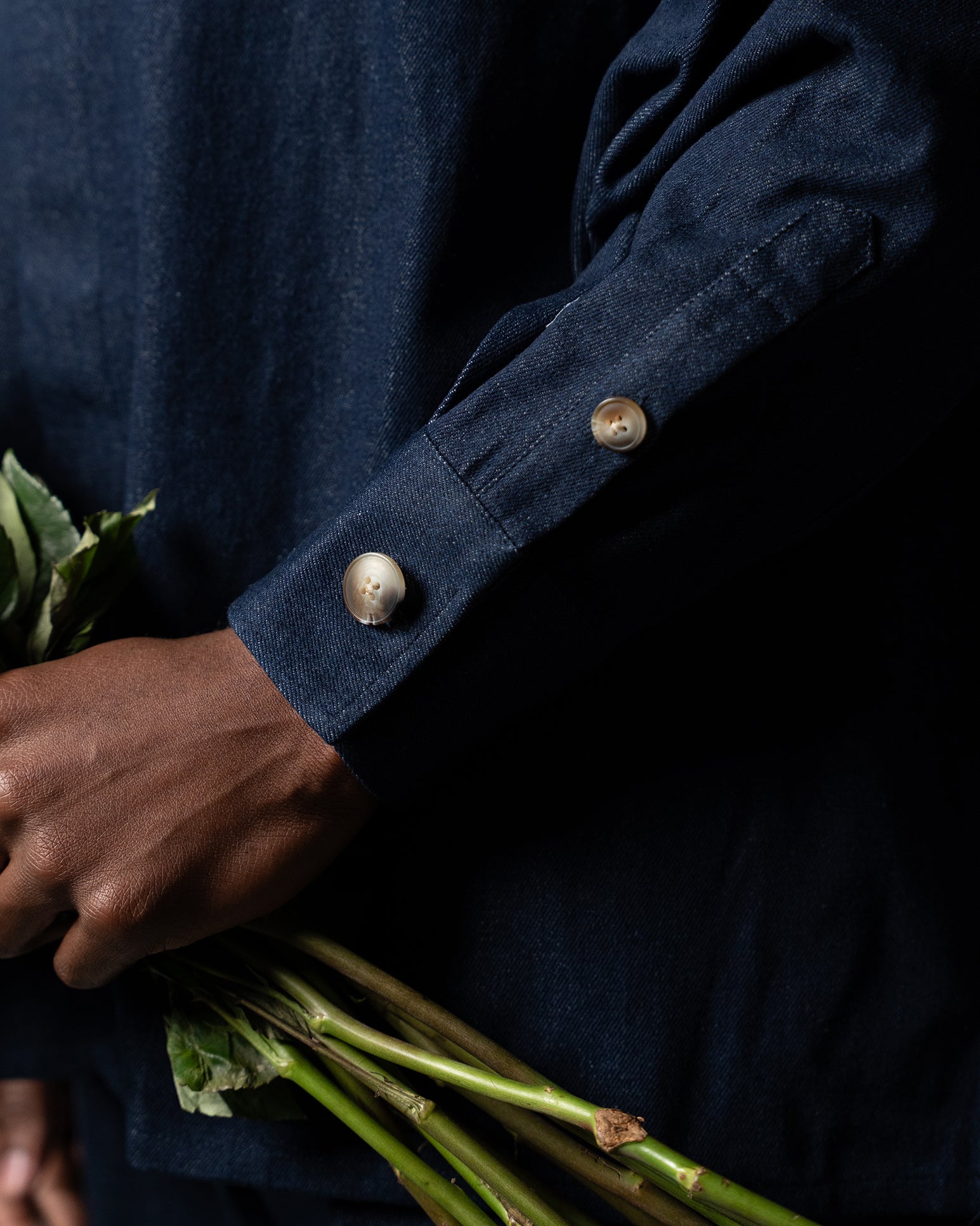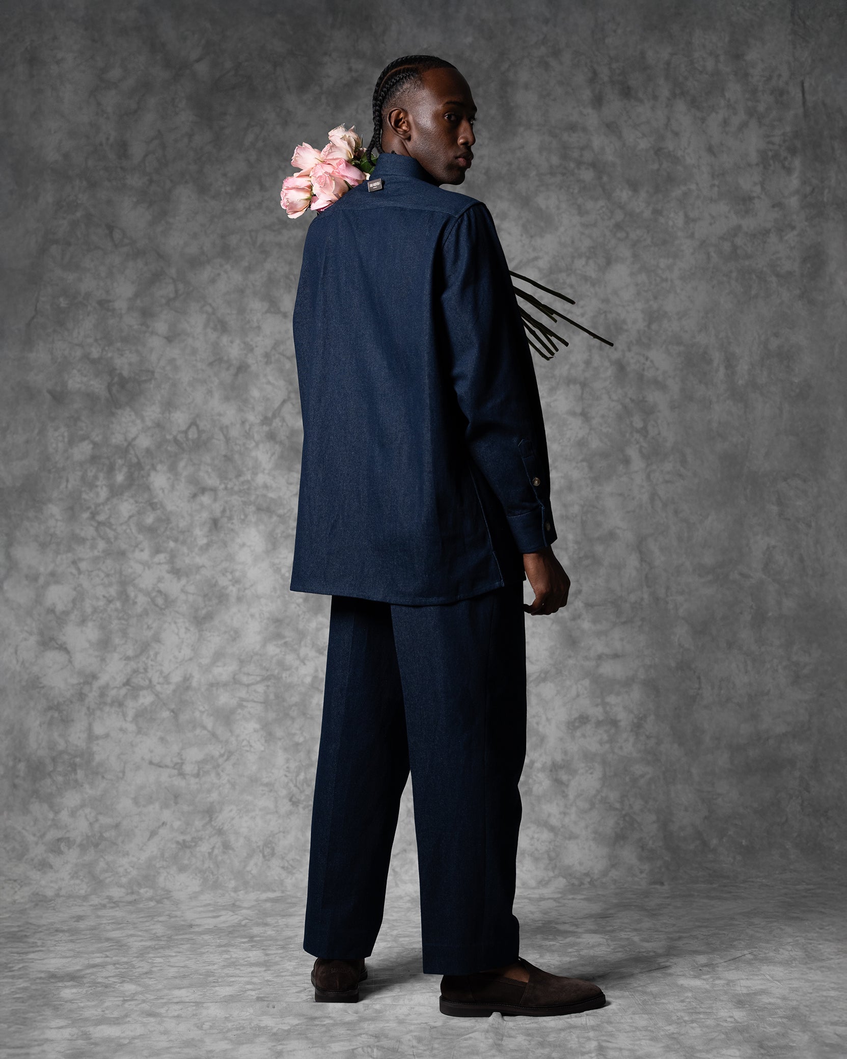 The Oversized Band Collar Shirt offers a minimalistic design and voluminous fit throughout and features a band collar which is subtly enlarged with a single visible top button. Additional features include natural horn buttons hidden under a double layered closure along the front.